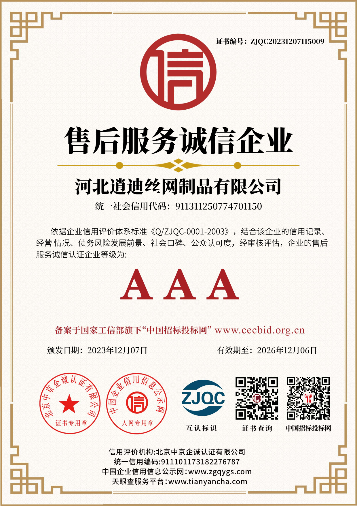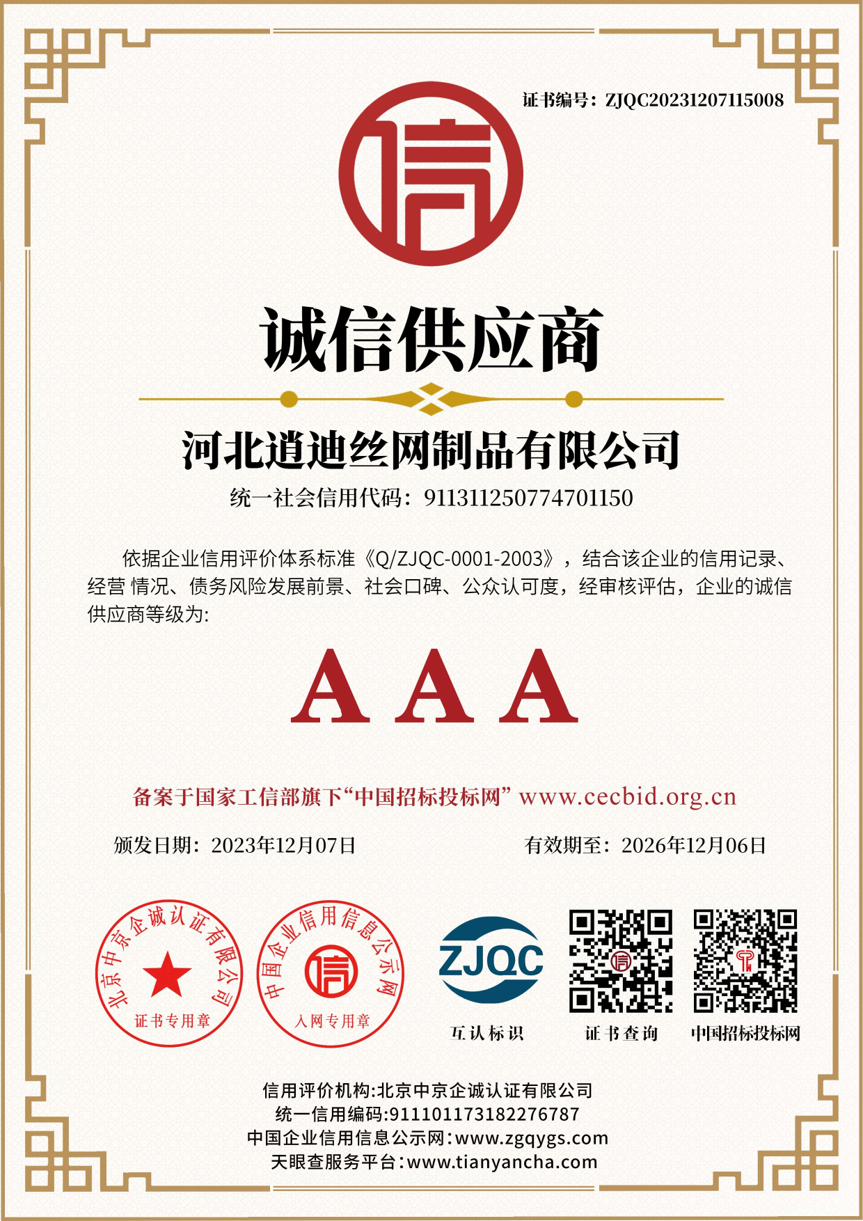 河北逍迪絲網(wǎng)制品有限公司誠(chéng)信天下,誠(chéng)信是我們公司一個(gè)原則問(wèn)題不可撼動(dòng)的,以心中有誠(chéng)信的思想結(jié)交五湖四海的朋友,能達(dá)到雙贏是最好的,我們堅(jiān)信朋友多了路好走,我們公司都是老朋友多,我們一直是這樣做的。河北逍迪絲網(wǎng)制品有限公司成立于2013年注冊(cè)資本壹仟伍佰萬(wàn)整,主要生產(chǎn)沖孔網(wǎng),鋼格板,金屬防蟲網(wǎng),如實(shí)的實(shí)體廠家,是一家-研發(fā)-銷售-生產(chǎn)-安裝-售后一條龍公司,2019年通過(guò)了ISO 9001認(rèn)證管理體系符合GB/T 19001-2016/ISO 9001:2015標(biāo)準(zhǔn),同時(shí)通過(guò)了SGS認(rèn)證,擁有商標(biāo)版權(quán)2品牌,擁有一個(gè)著作版權(quán),河北逍迪絲網(wǎng)制品有限公司位于中國(guó)有名的(絲網(wǎng)之鄉(xiāng))安平縣,于天津,北京,雄安,石家莊相鄰,交通非常發(fā)達(dá),出口可以選擇天津港口非常近每天都有接貨送貨往返車輛,空運(yùn)可以選擇石家莊正定機(jī)場(chǎng),附近也有鐵路運(yùn)輸,當(dāng)?shù)剡€有兩個(gè)生態(tài)物流園區(qū)發(fā)往全國(guó)各地,我們沖孔網(wǎng)工廠生產(chǎn)設(shè)備有:普通沖壓機(jī),高速?zèng)_壓機(jī),自主研發(fā)小微孔沖壓機(jī),龍門沖,磚塔沖孔,重型沖孔機(jī),萬(wàn)瓦級(jí)別激光切割機(jī),3000W激光切割機(jī),焊接設(shè)備,折彎?rùn)C(jī),校平機(jī),剪板機(jī),精密校平機(jī),(對(duì)板面平整度要求苛刻的客戶群體0.5-0.2誤差)我們公司銷售市場(chǎng)沒有局限性國(guó)內(nèi)國(guó)外都供應(yīng),擁有出口權(quán)...